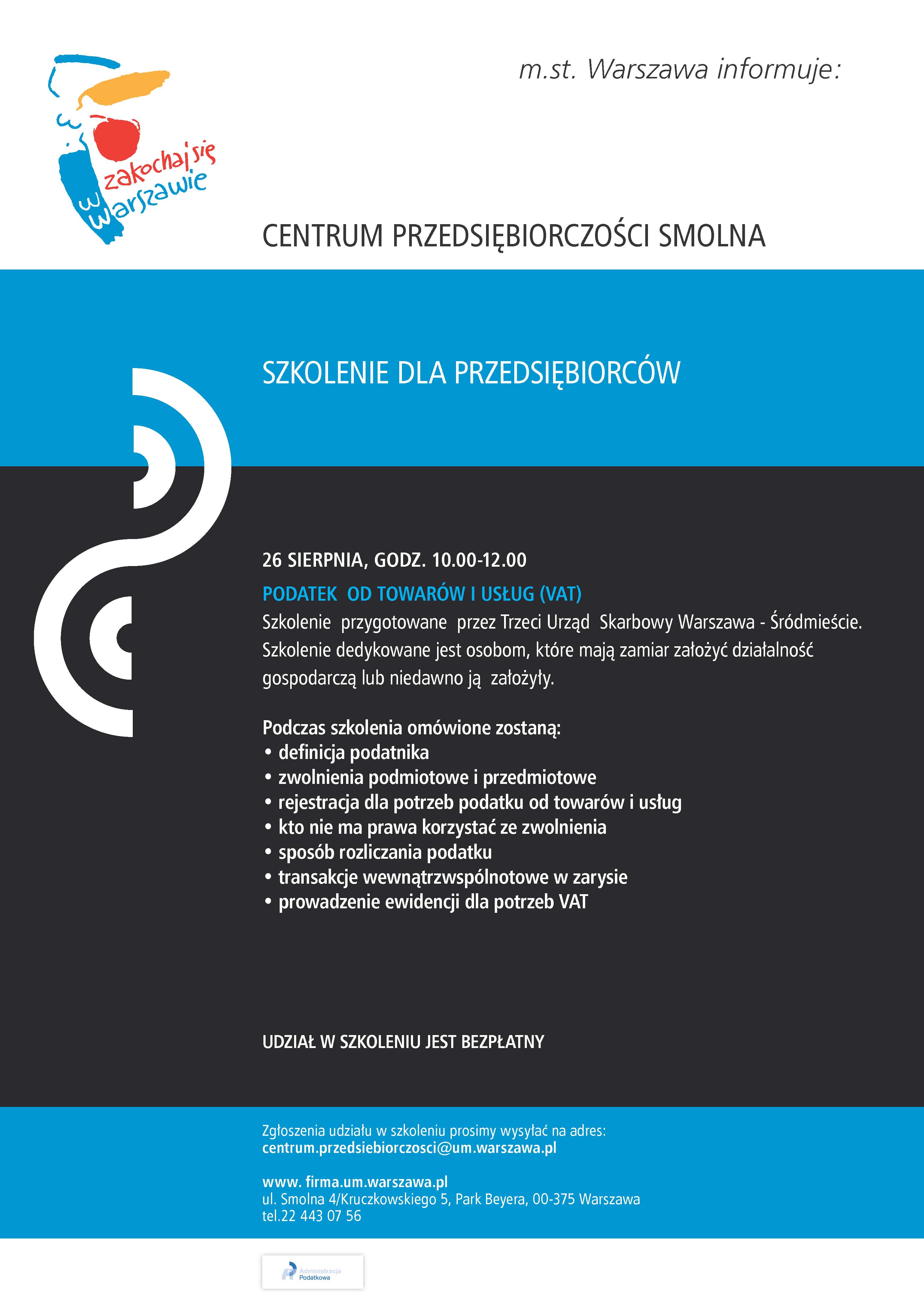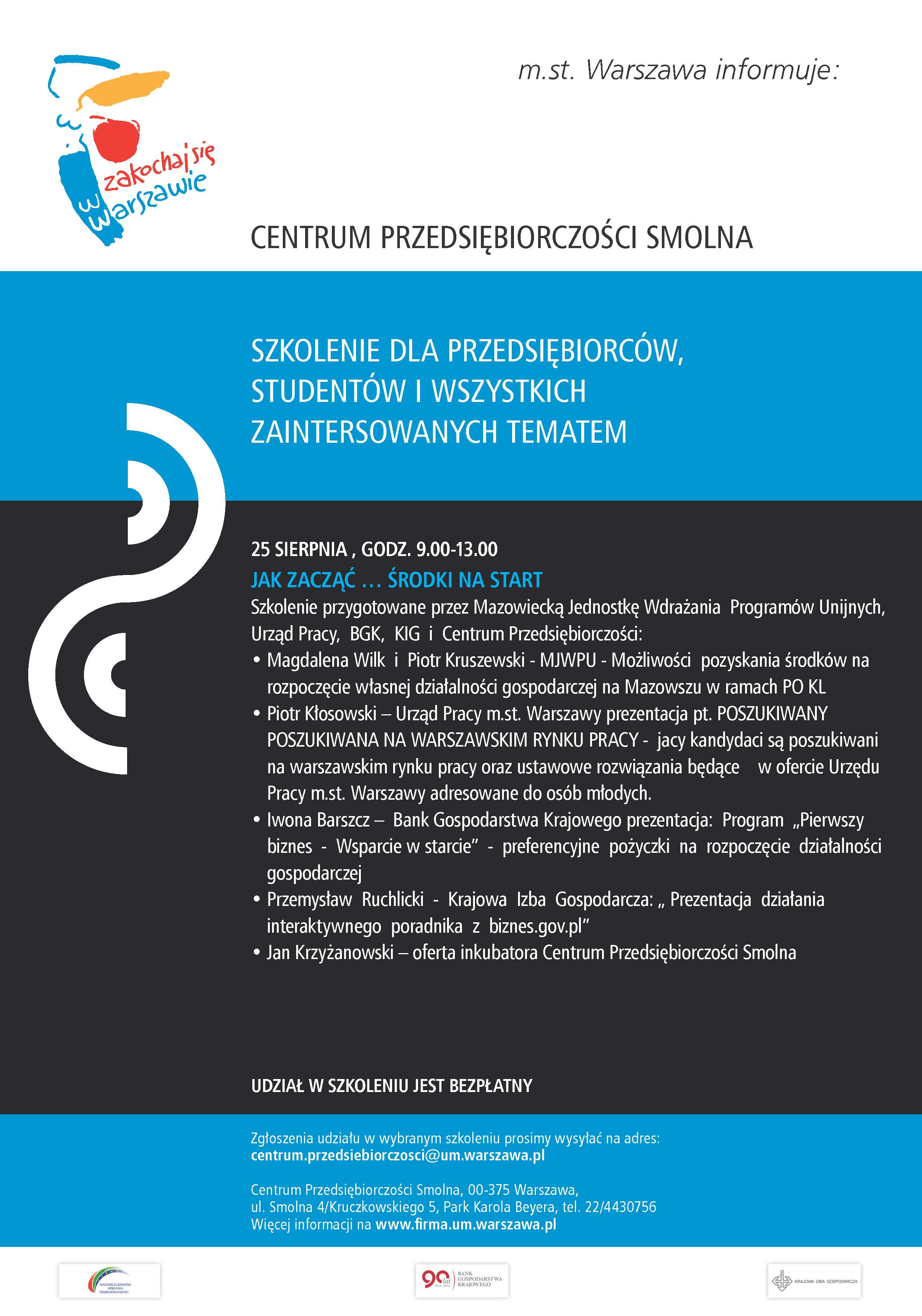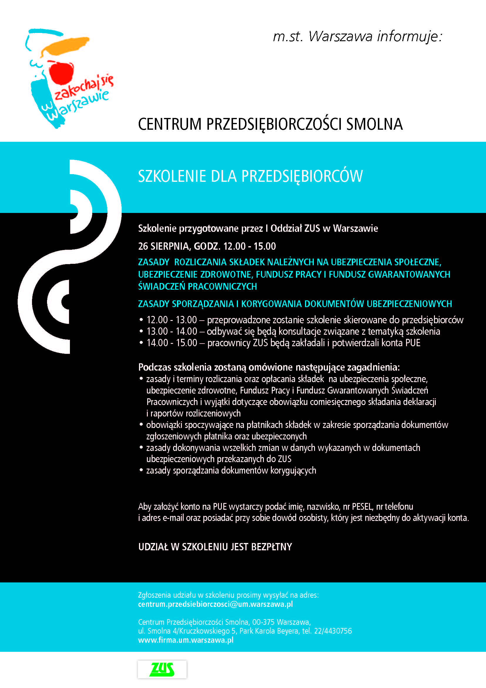 Zgłoszenia udziału w wybranym szkoleniu należy wysłać na e-mail: centrum.przedsiebiorczosci@um.warszawa.pl
