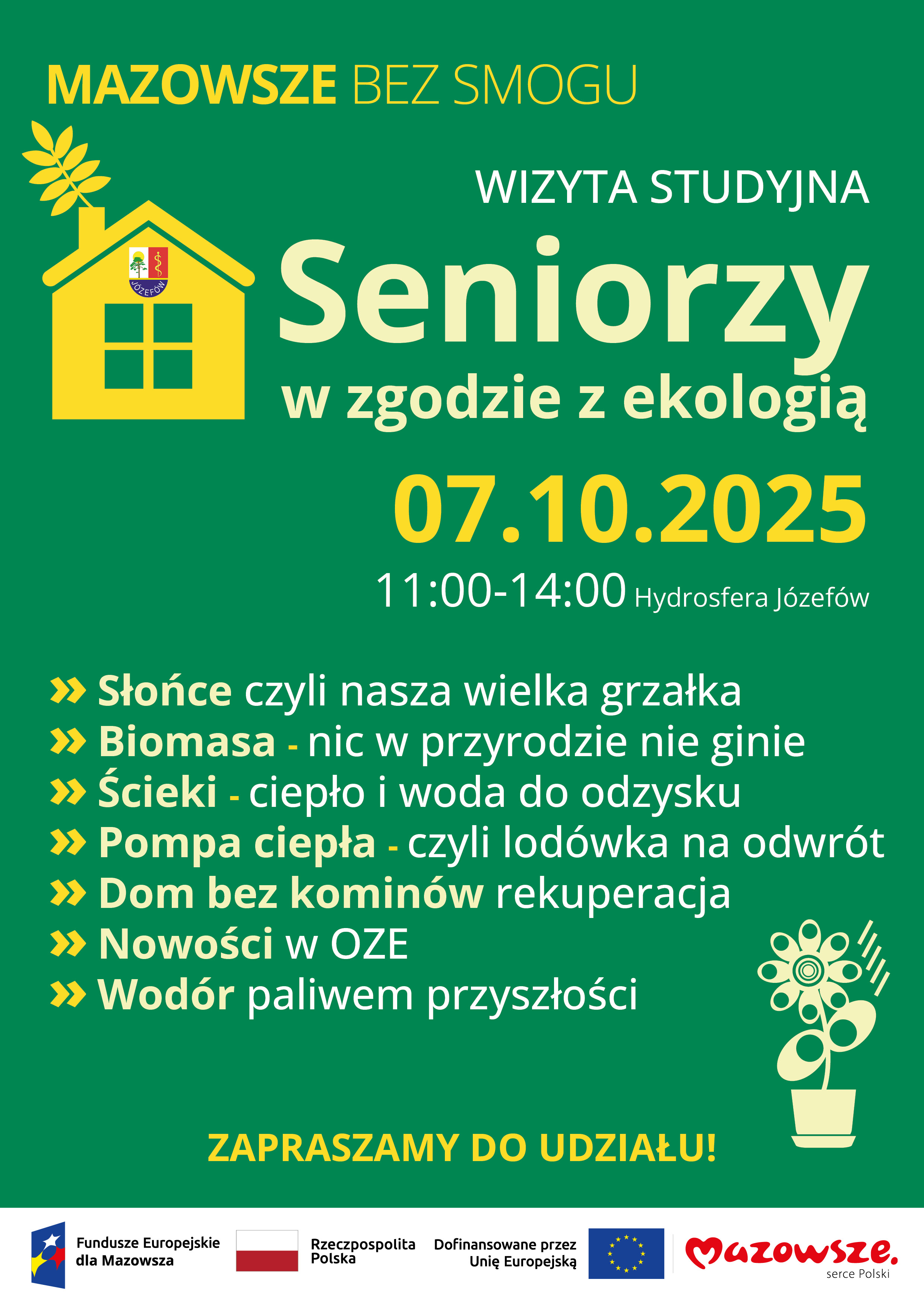 Miasto Józefów realizuje program współfinansowany ze środków Unii Europejskiej pn. „Mazowsze bez Smogu”. W ramach programu, realizowanego w latach 2024 – 2028, przewidziano szereg działań edukacyjnych, w tym skierowanych do osób w wieku powyżej 60 lat.