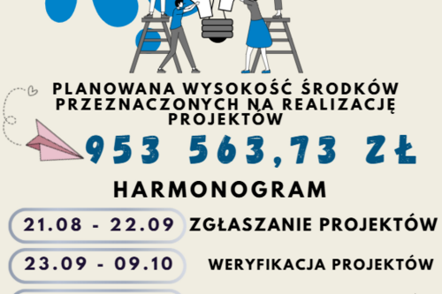 20 sierpnia 2025 Rusza nabór projektów do Budżetu Obywatelskiego, które zostaną zrealizowane w roku 2026! Od 21 sierpnia, rusza nabór projektów do Budżet...