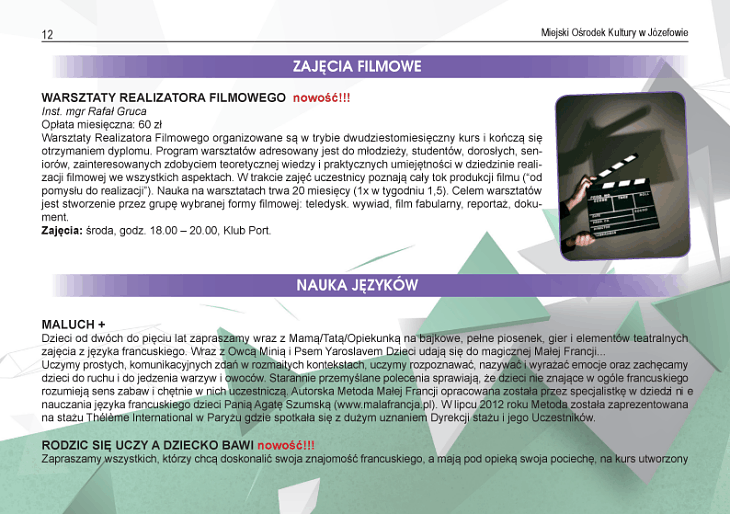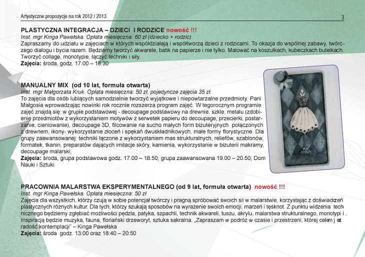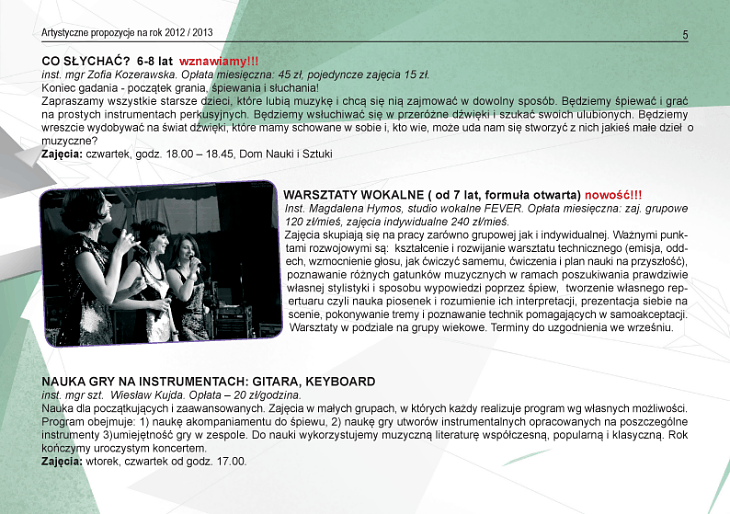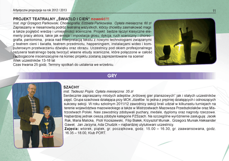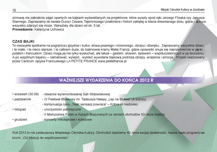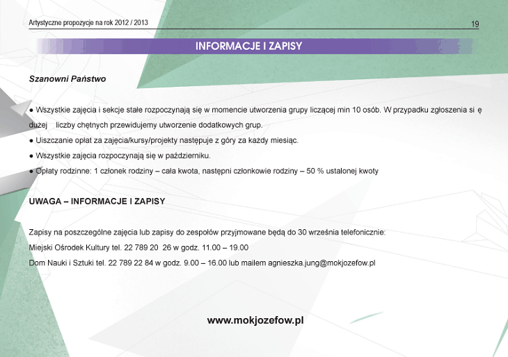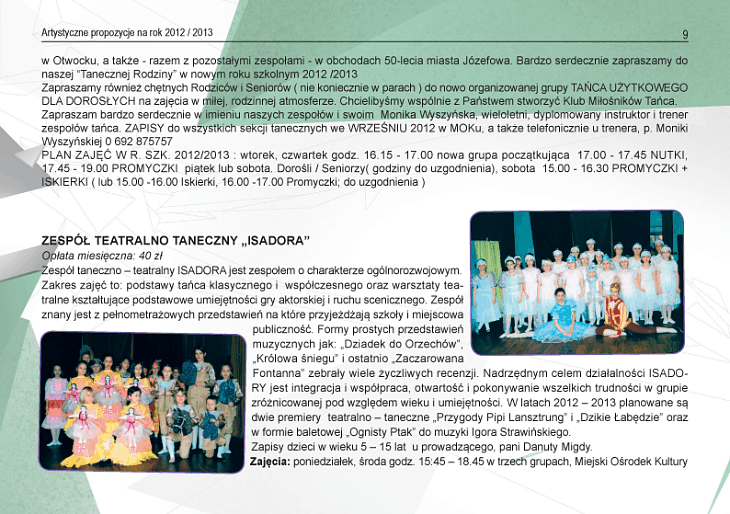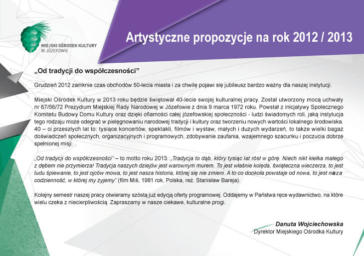 Artystyczne propozycje Miejskiego Ośrodka Kultury na rok 2012 / 2013.