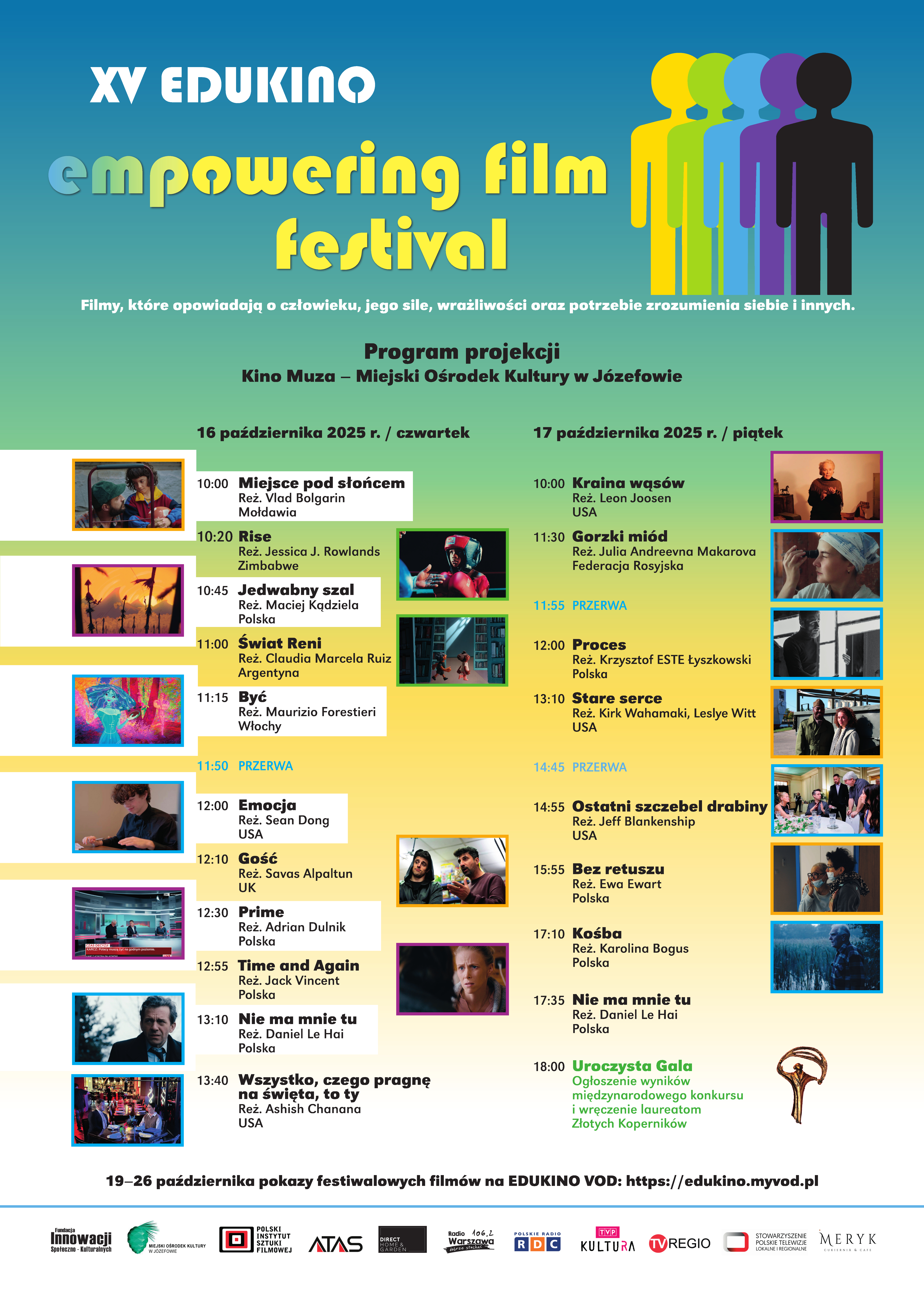 W tym roku festiwal Edukino Empowering będzie realizowany będzie w dniach 16-26 października 2025 r w józefowskim Miejskim Ośrodku Kultury. Festiwal prezentuje 76 filmów z 24 krajów. Zostały one wybrane spośród 305 produkcji nadesłanych z 46 krajów. Są to fabuły, dokumenty i animacje, które poruszają, inspirują i skłaniają do refleksji.