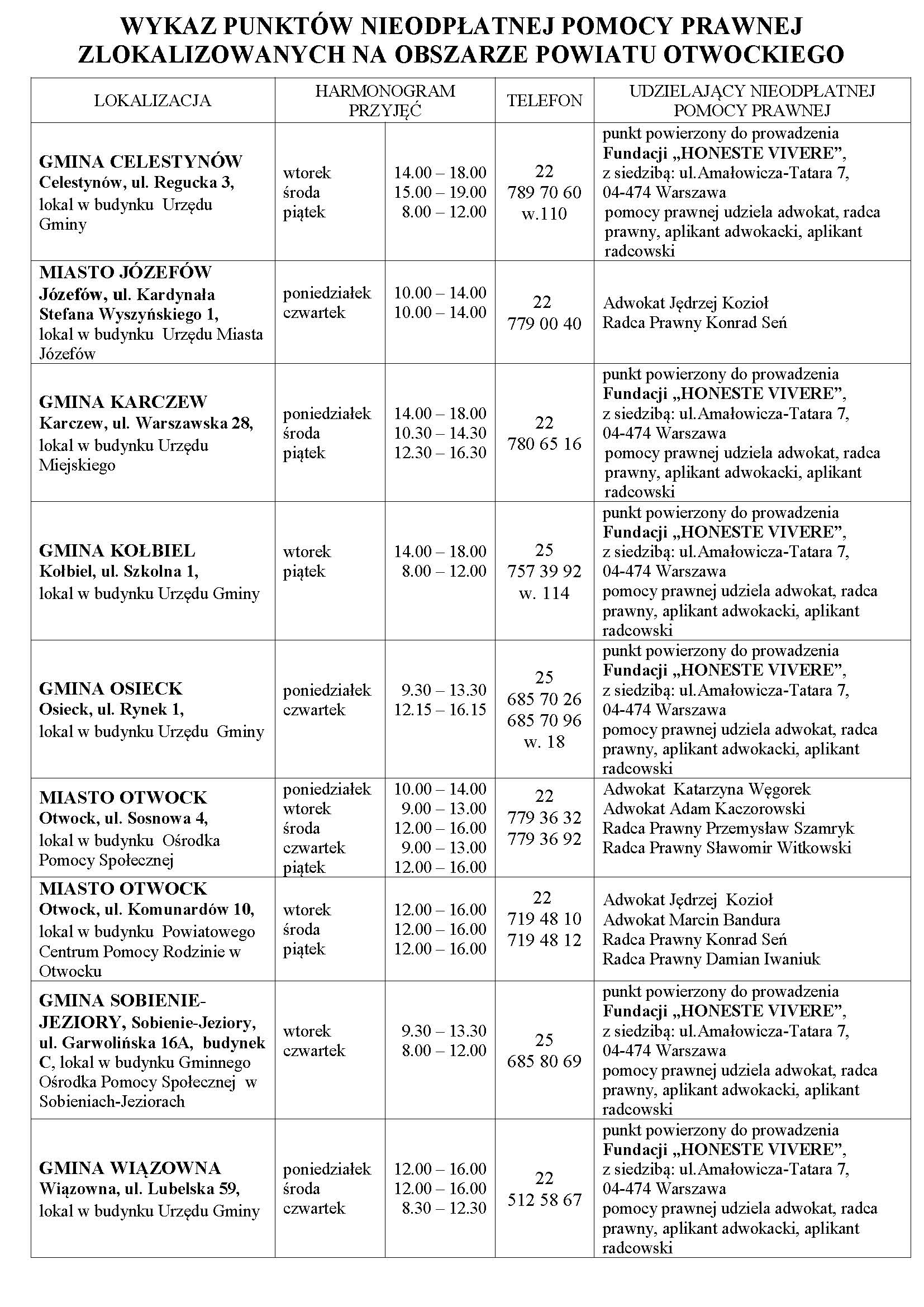 Punkty nieodpłatnej pomocy prawnej świadczące porady prawne na terenie całego Powiatu Otwockiego