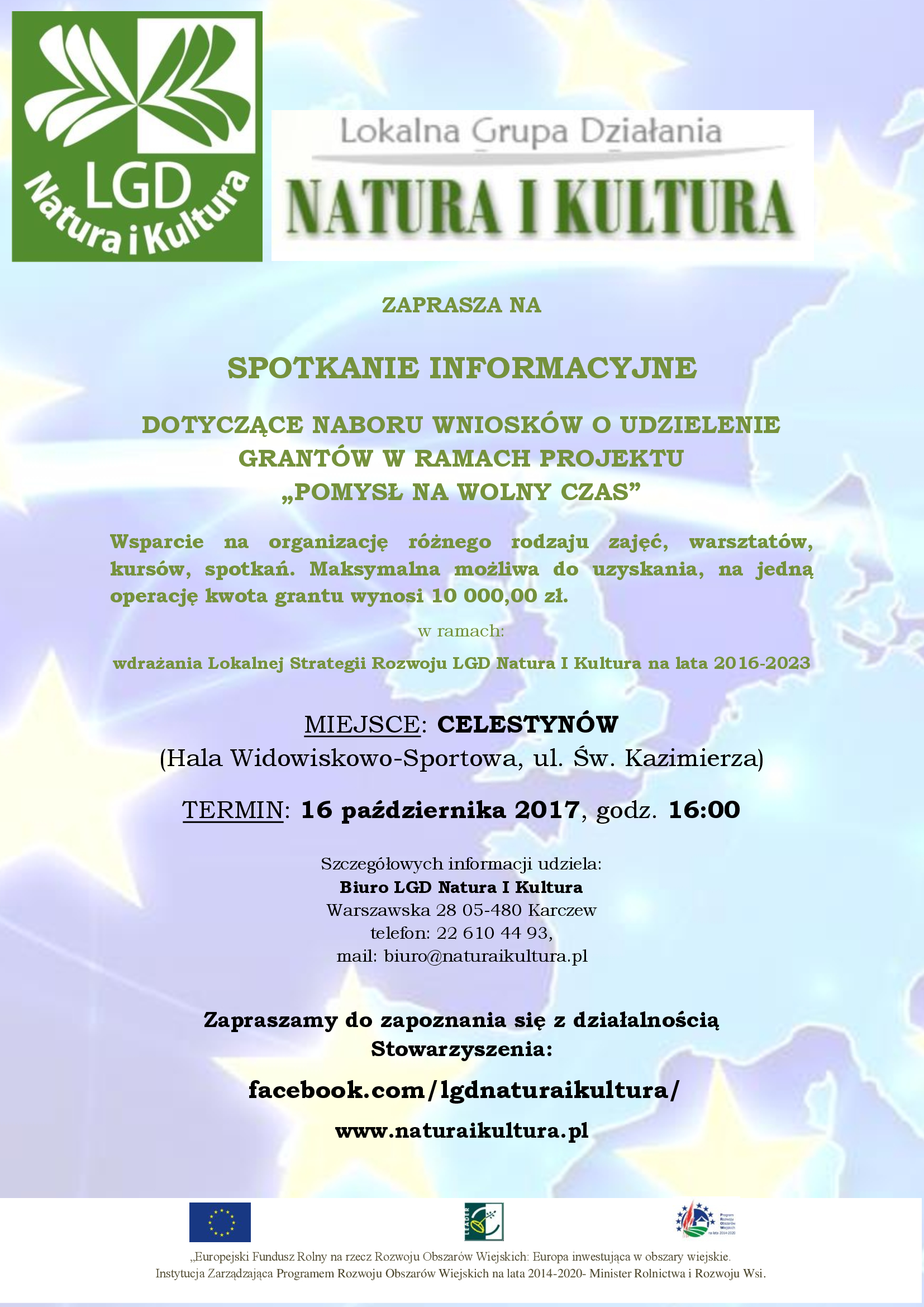 Lokalna Grupa Działania Natura i Kultura zaprasza organizacje pozarządowe do udziału w spotkaniach informacyjnych dotyczących naboru na grant „Pomysł na wolny czas”, który rozpocznie się 19 października br.