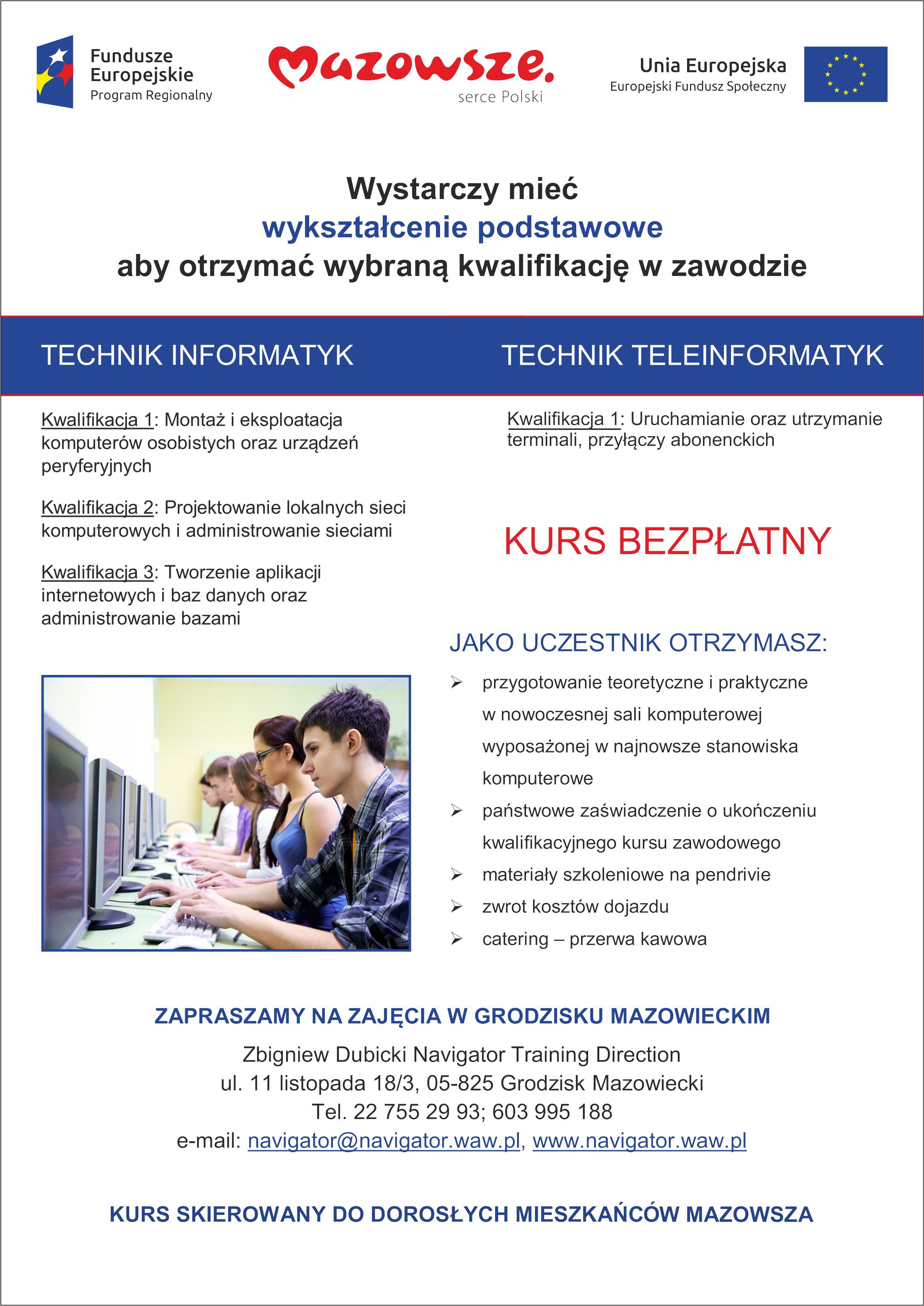 Technik infromatyk i technik teleinformatyk: pierwsze bezpłatne kursy kwalifikacji zawodowych na Mazowszu